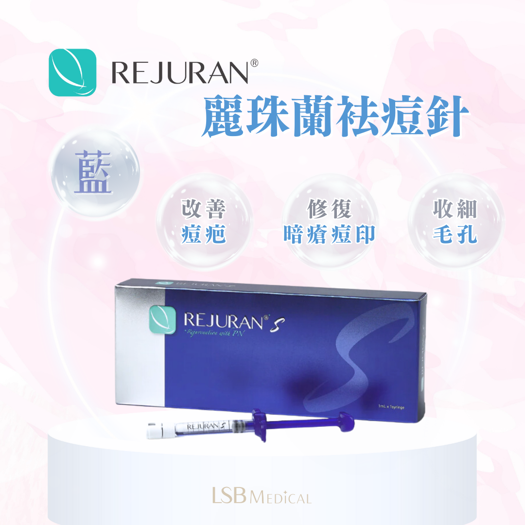 REJURAN麗珠蘭(藍盒)袪痘針專為治療各種疤痕痘印而設,有效減淡痘印 抑制暗瘡生長。大部分顧客在接受療程後一個月內,疤痕、痘印等都會開始變淡。