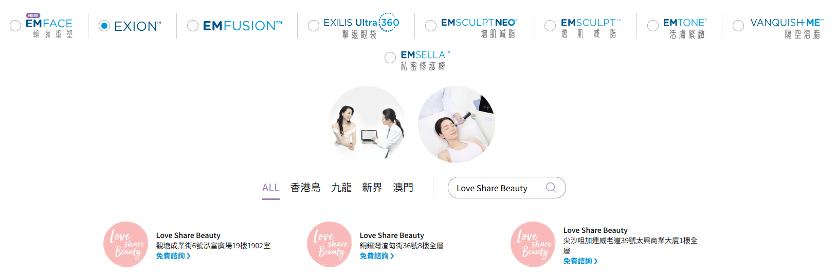 Love Share Beauty 亦是BTL EXION 的指定治療中心
