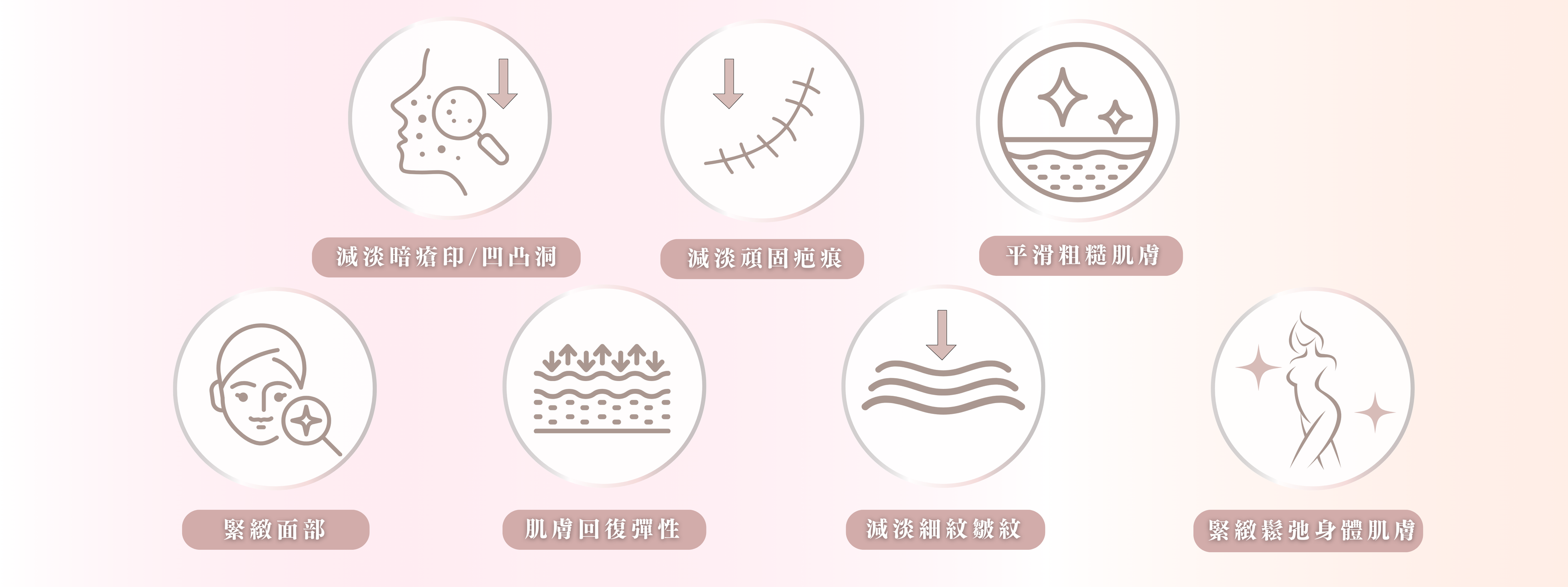 獨特的身體治療擴展模式: 4mm的微針在身體上能伸展熱力4mm,總穿透深度8mm。