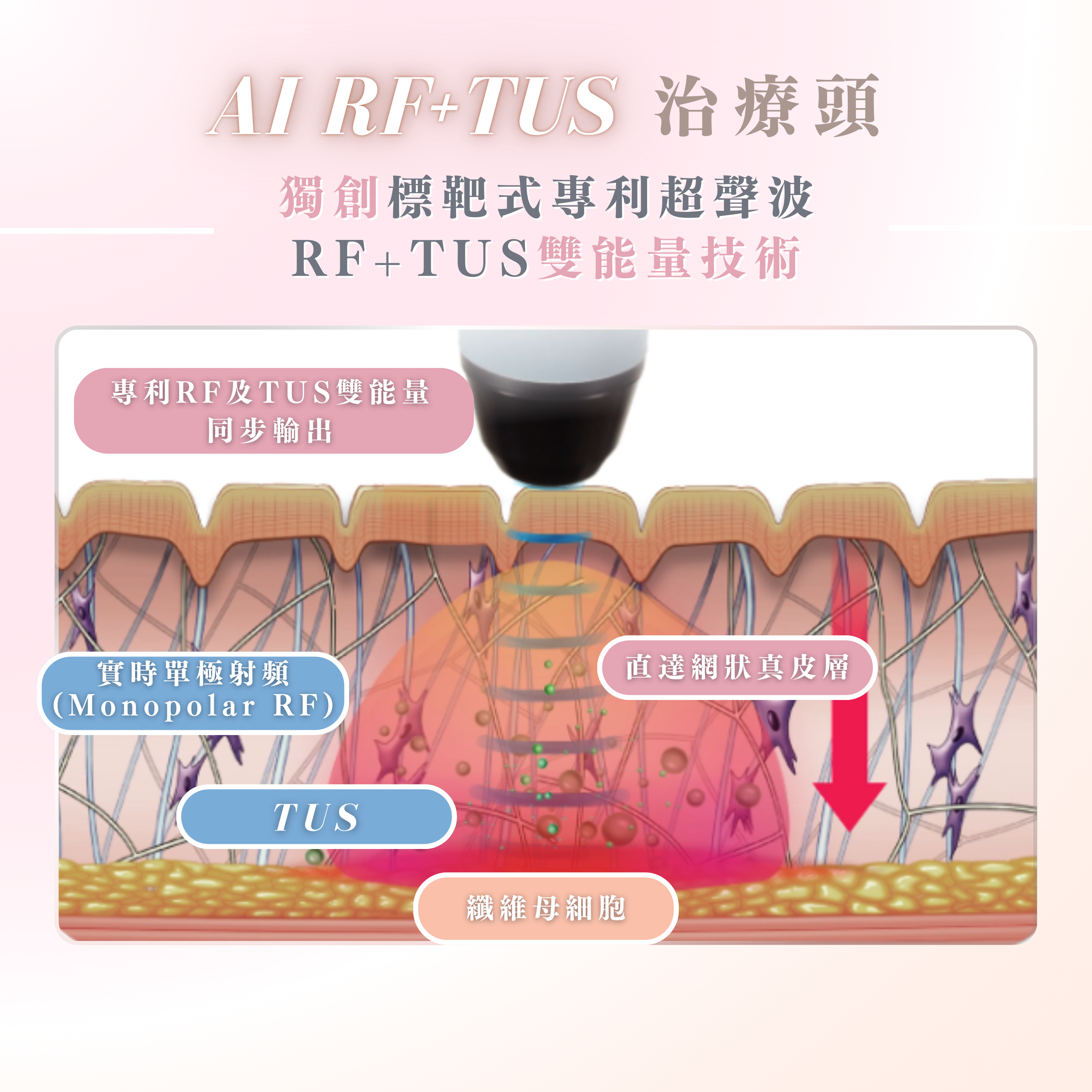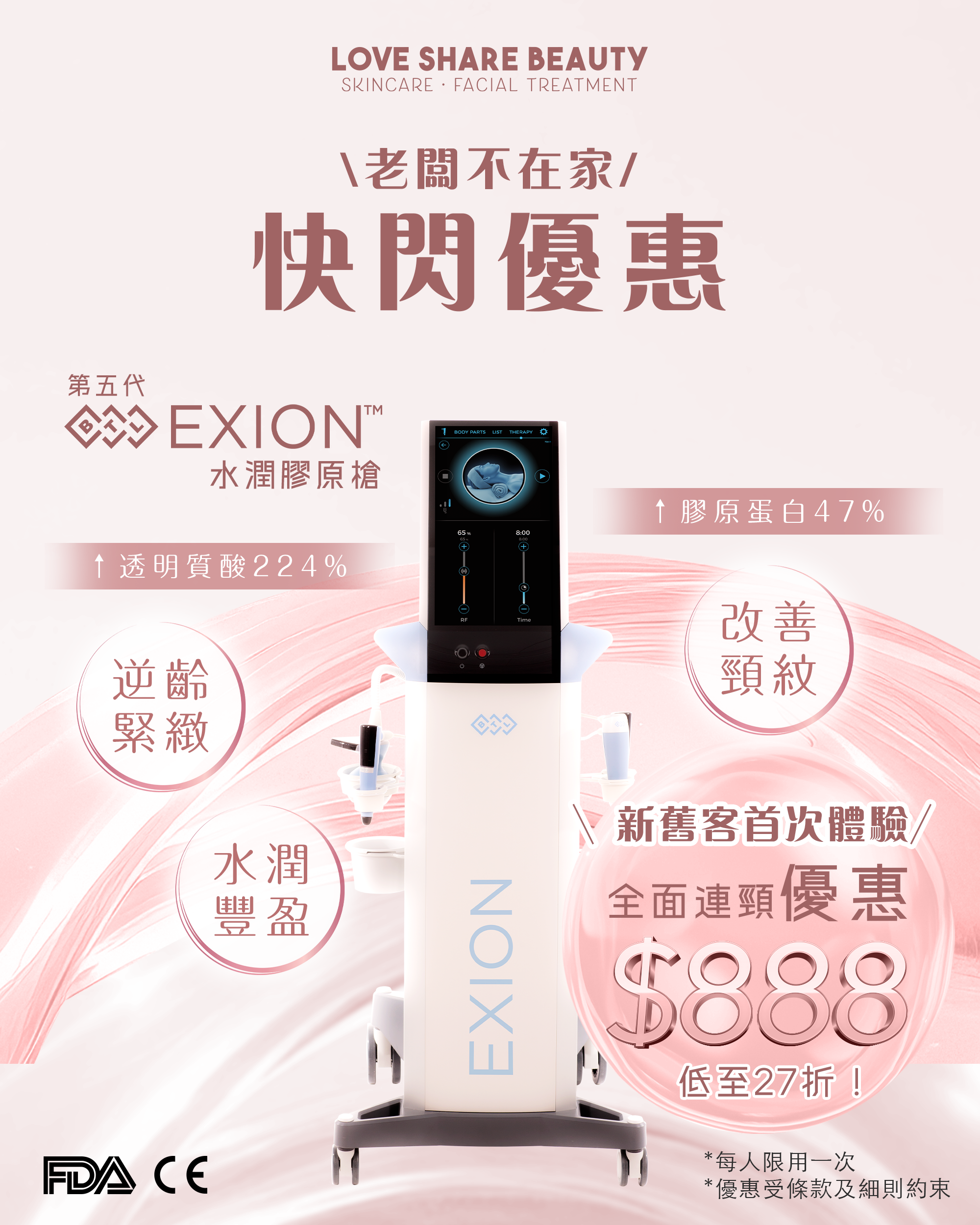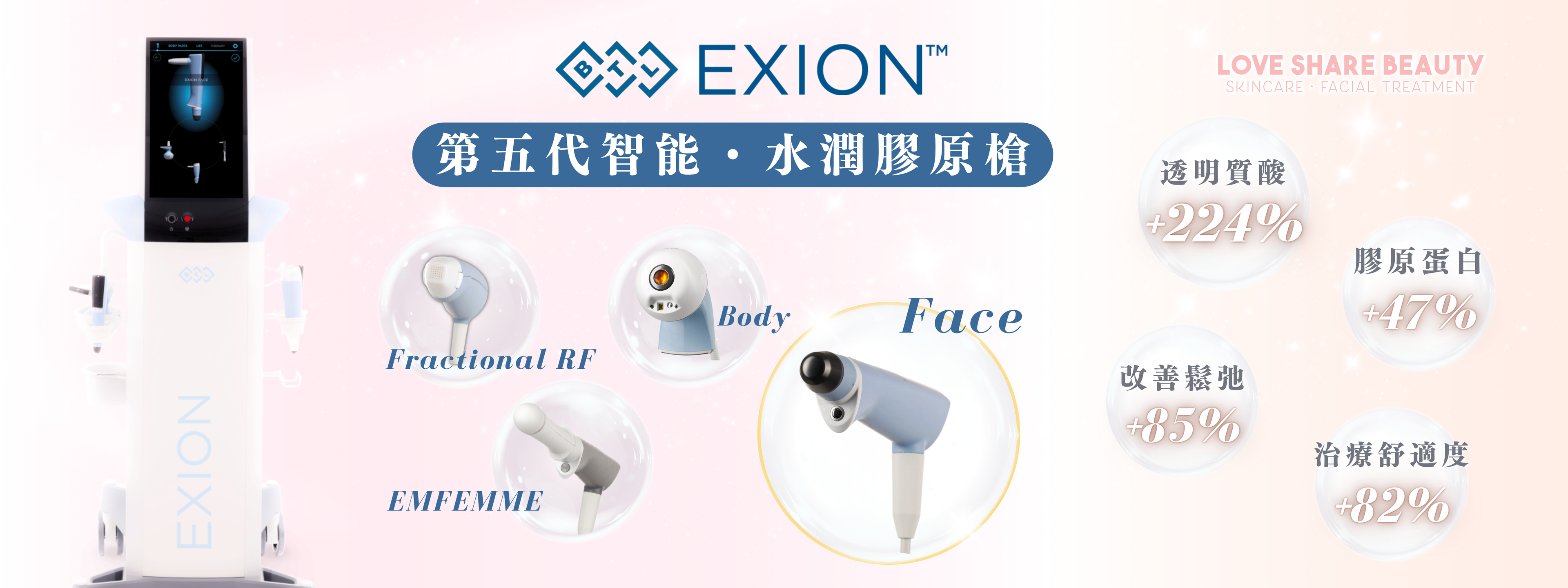 BTL Exion第五代智能水潤膠原槍 AI智能 RFxTUS治療頭BTL Exion第五代智能水潤膠原槍,採用全球第一部以獨創標靶式專利超聲波RF+TUS雙能量技術,雙能量同步輸出深入皮膚底層,刺激透明質酸與膠原蛋白,重啟纖維母細胞回復年輕肌底活躍度,從源頭改善膚質,自生透明質酸、膠原蛋白及彈力蛋白,撐起肌底,令肌膚更飽滿年輕。 立即登記BTL EXION 水潤膠原槍,尊享限時優惠 HK$888 全面連頸,馬上預約體驗吧!