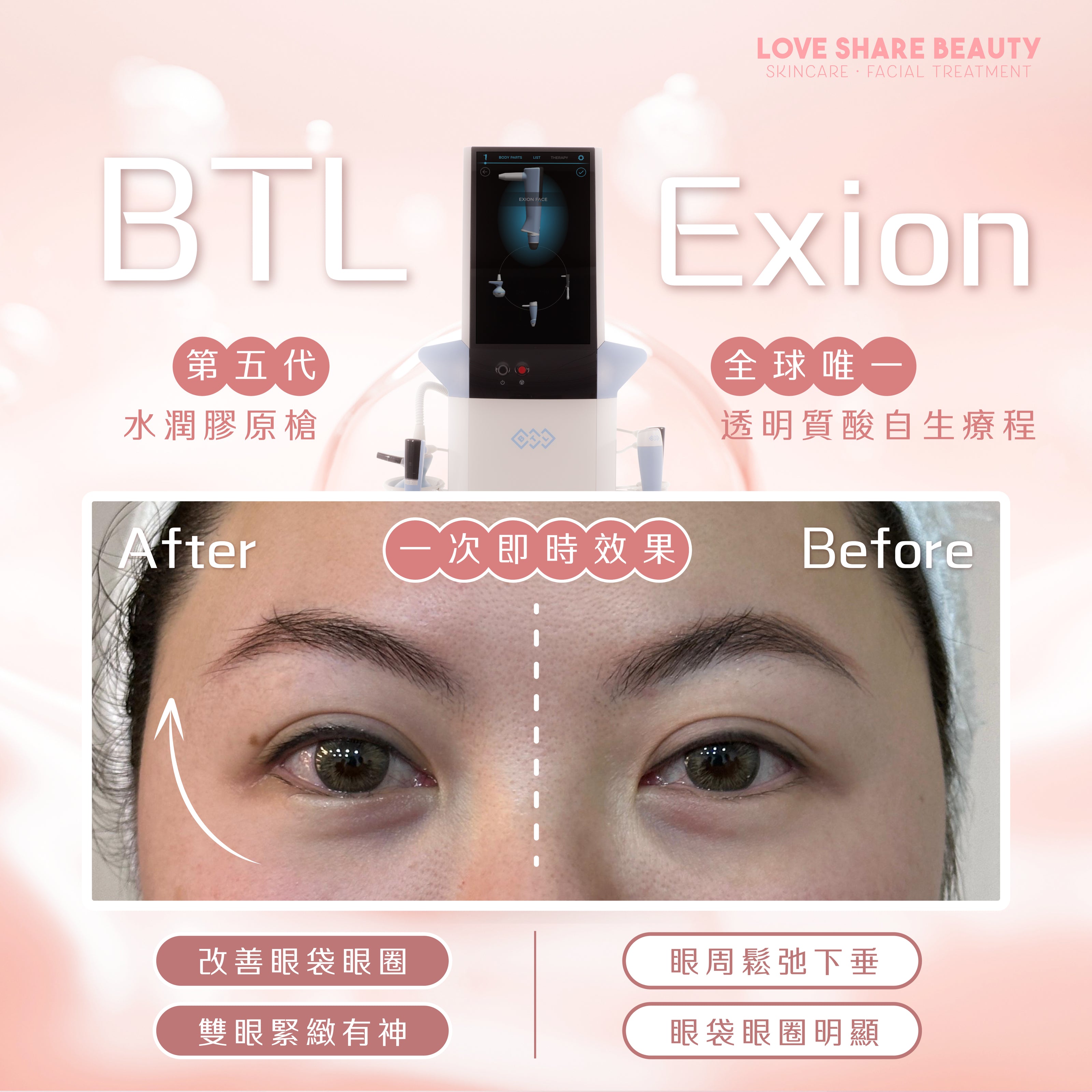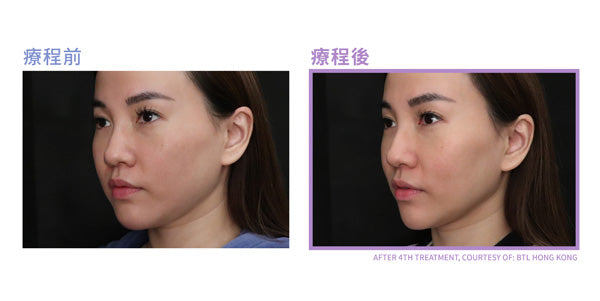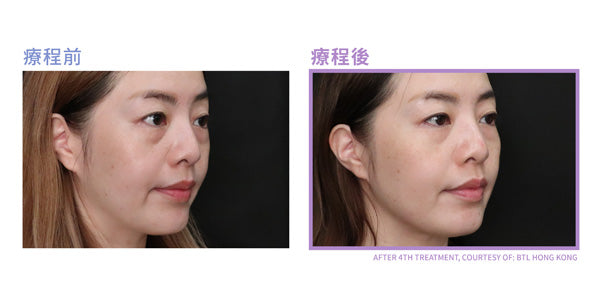 4 次BTL Exion水潤膠原槍療程即可有效,肌膚會變得更水嫩飽滿有彈性,細紋皺紋減少,輪廓更緊緻。