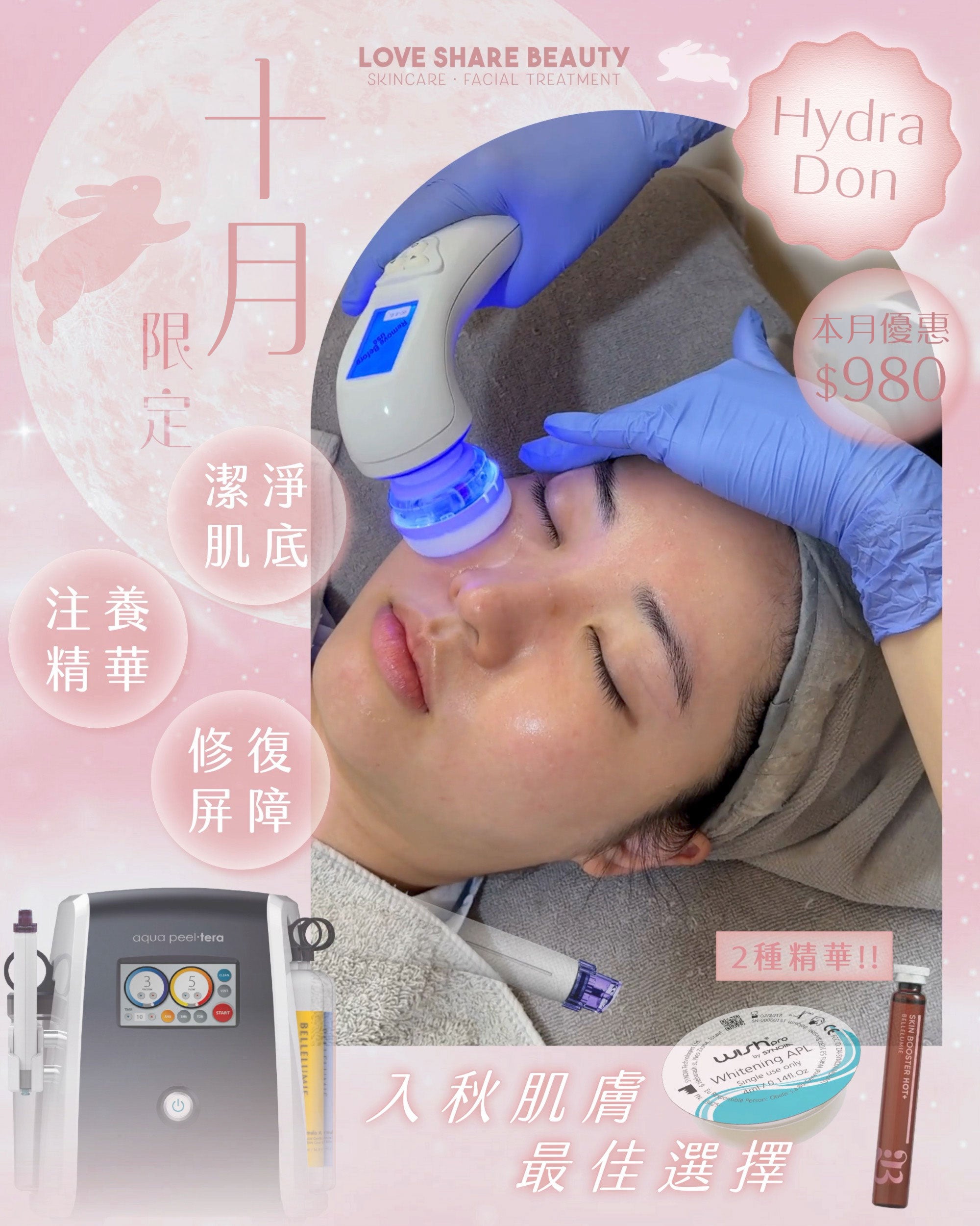 - Hydra水上飄先溶解並去除老化角質及皮脂污垢,再以無痛真空吸力技術清除毛孔污垢,最後導入激活因子精華,激發膠原再生。肌膚水澤透嫩,回復健康緊緻。 -