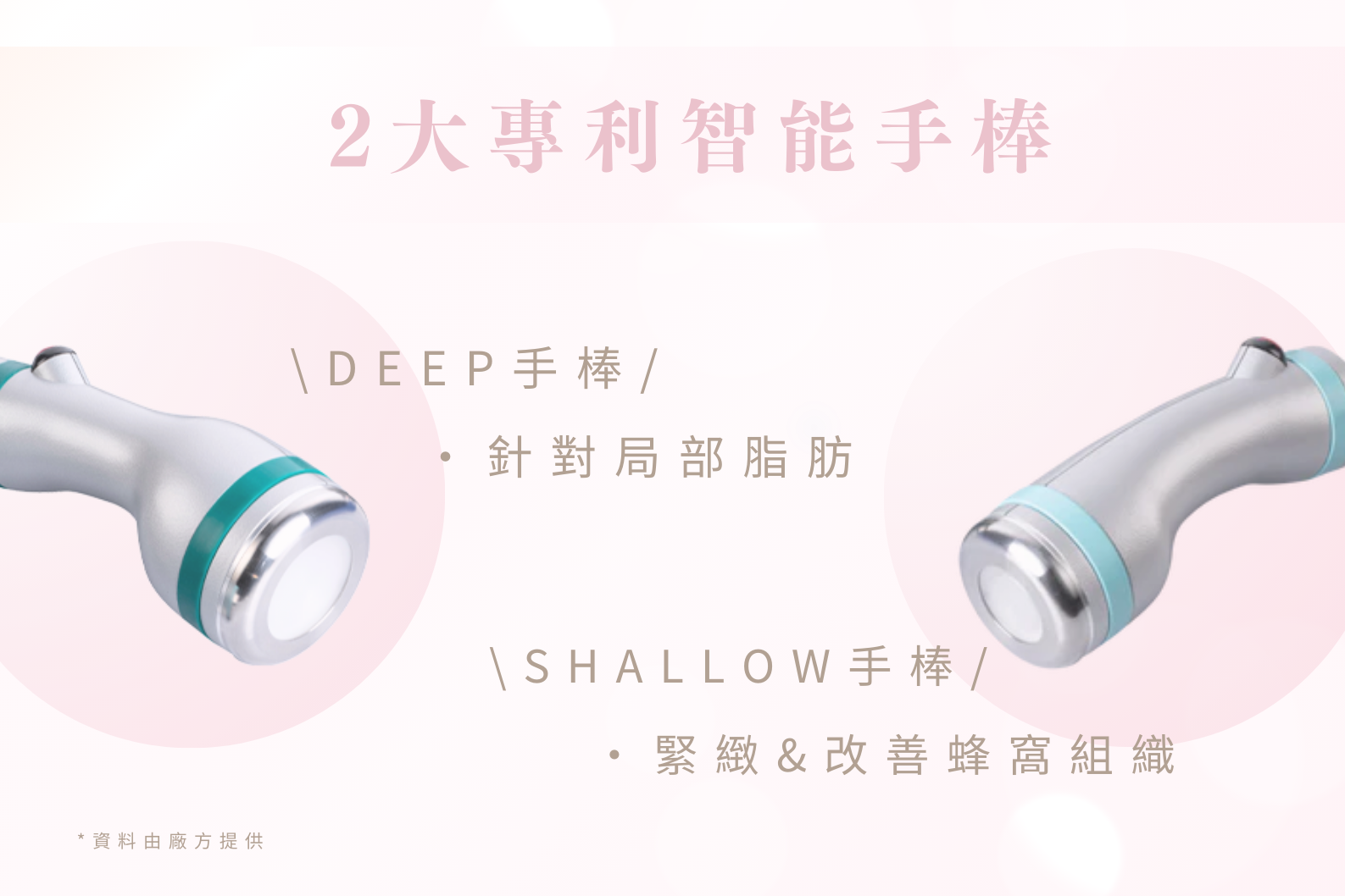 Onda一叮溶脂備有兩款不同作用及深度的手捧,可以針對身體不同部位進行治療。DEEP手棒主要處理局部脂肪堆積的問題,而SHALLOW手棒則處理蜂窩組織、皮膚鬆弛、雙下巴等問題。